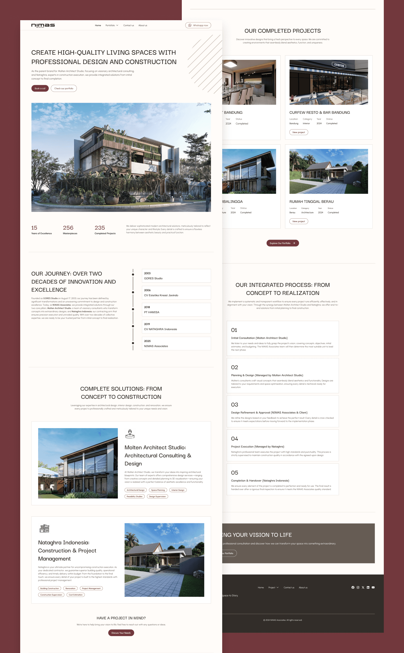 Nimas Associate is the parent company of a premier architecture and construction firm. This project focused on a comprehensive website redesign to better reflect their high-end craftsmanship and professional authority. The goal was to transform their digital presence into a prestigious platform that serves as the definitive gateway to their diverse architectural and building services.