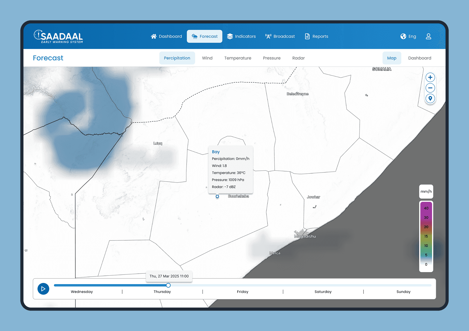 Saadaal is an Early Warning System (EWS) SaaS platform designed to provide real-time climate forecasts and hazard warnings. This project focused on redesigning the dashboard to help stakeholders and rural users quickly interpret critical climate data, from flood alerts to rainfall trends, in a single, high-stakes environment.